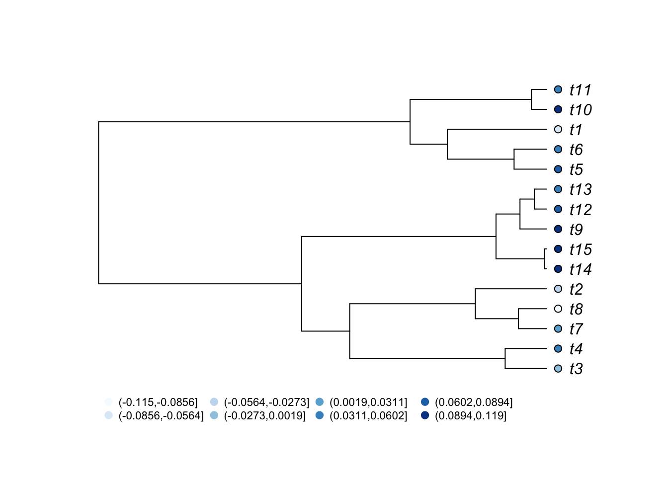 legend(0,0,legend=levels(cut(trait1[,1],breaks=8)),